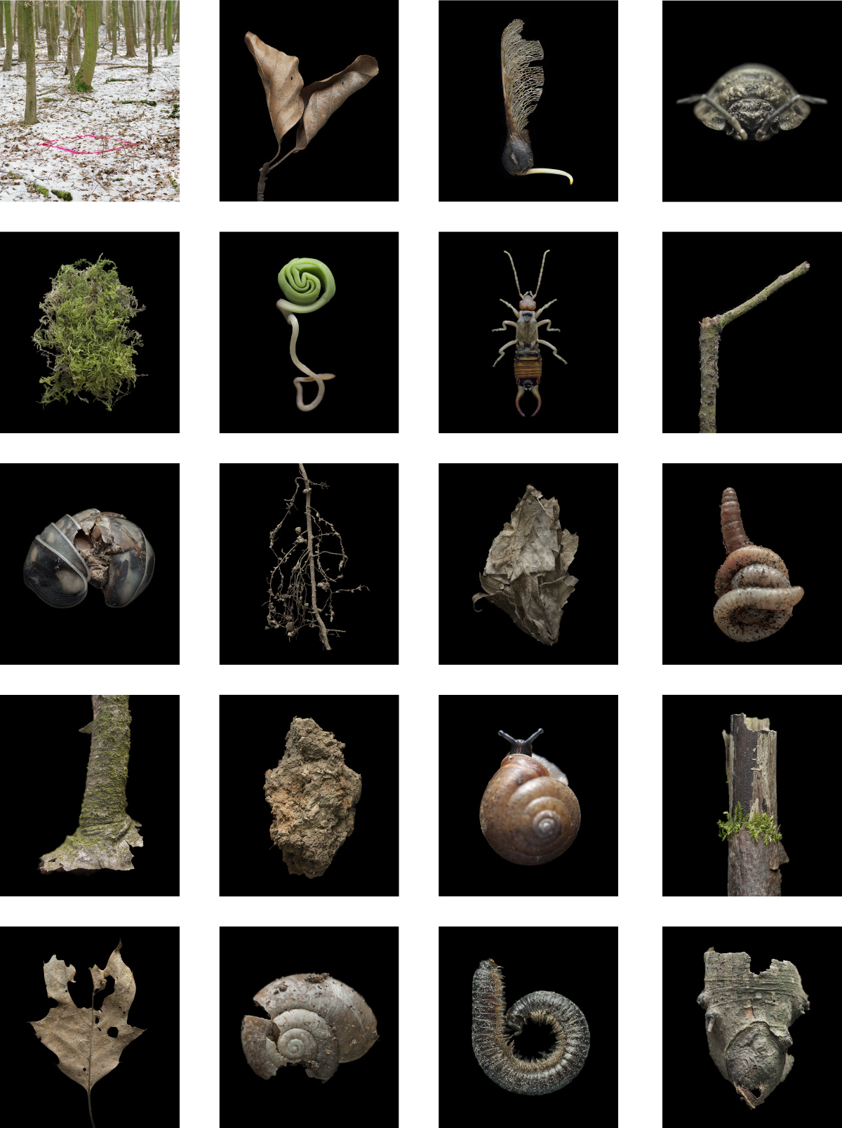 Muscheln, Pflanzen, Wurzeln, Steine) werden dann in einem Fotostudio mittels einer „sachlichen“